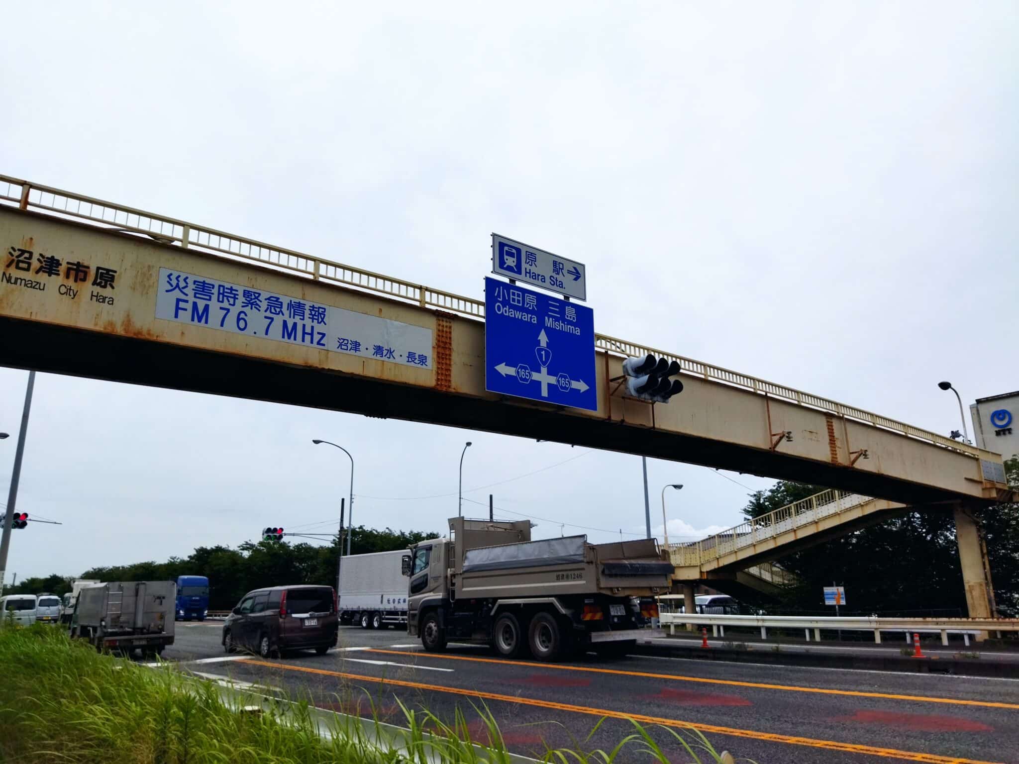 旧東海道から興国寺城通りへ城跡まで一直線の道路でした。国道1号を歩道橋で渡る。