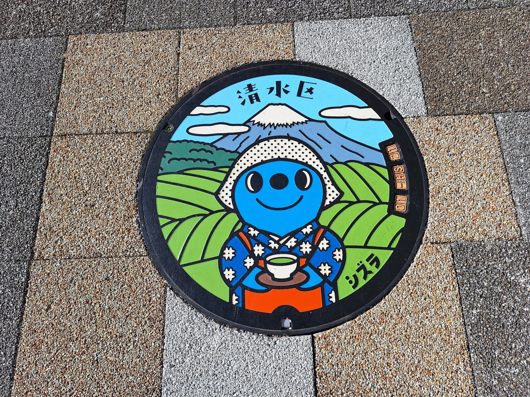 駅前ロータリーのマンホール蓋にもキャラクター。