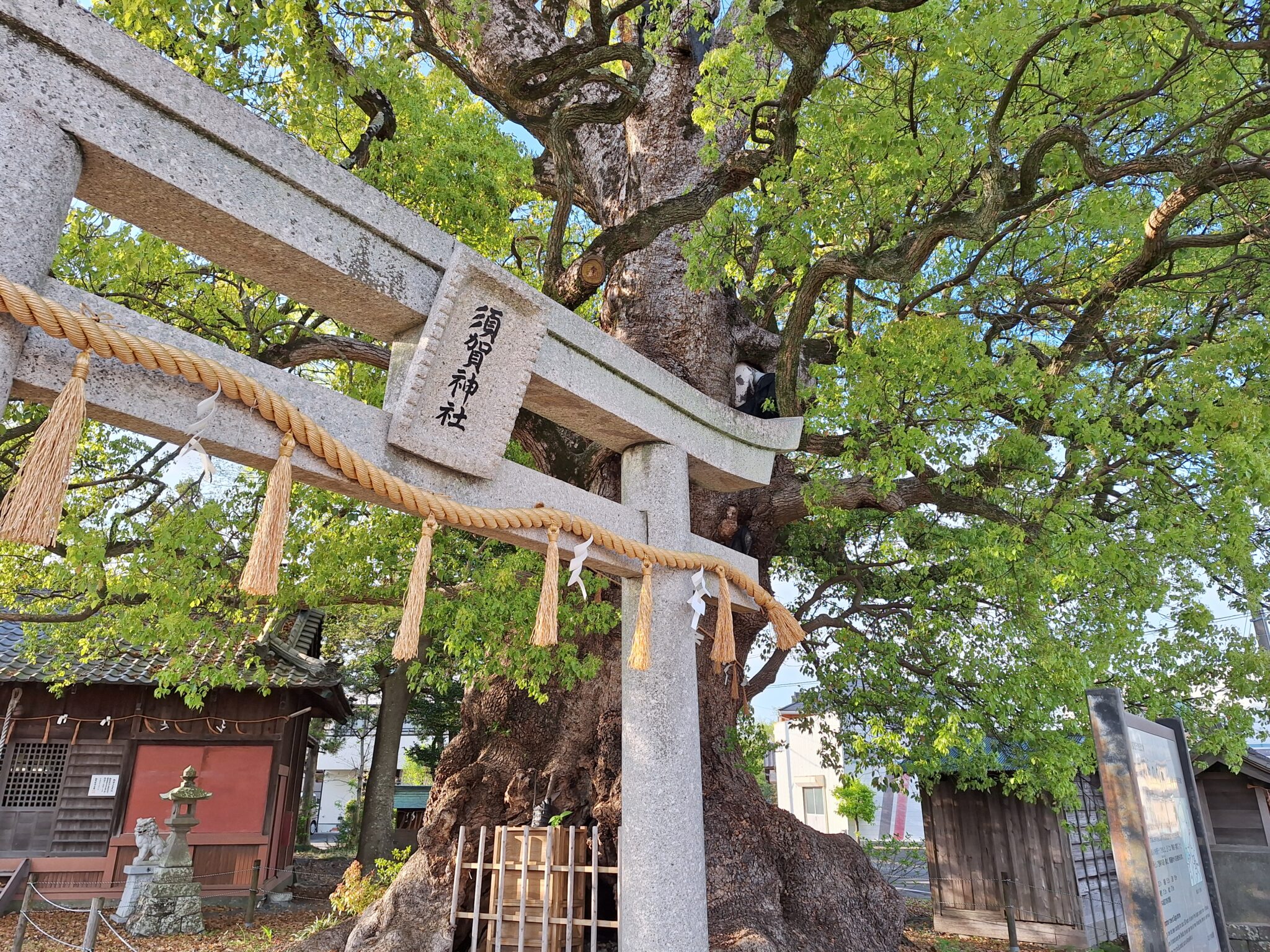 須賀神社の大楠。天然記念物指定。写真ではわかりずらいがホントに大きい。